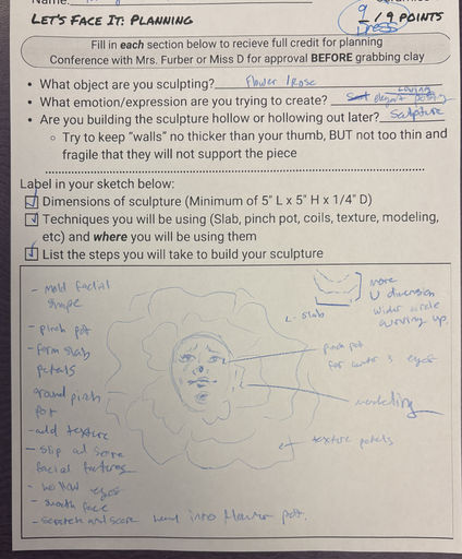 Unit Overview: Combining a variety of handbuilding techniques learned in previous units, students chose an object to personify with an emotional expression of their choosing.